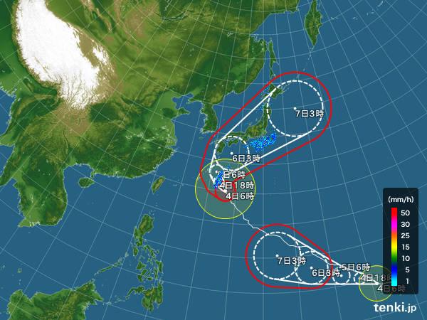 3日午後9時、台風19号がマーシャル諸島で発生したようです。中心気圧は1002hPa、中心付近の最大風速は18メートルです。今後は発達しながら台風18号のあとを追うように、北西へ進む見込みです。