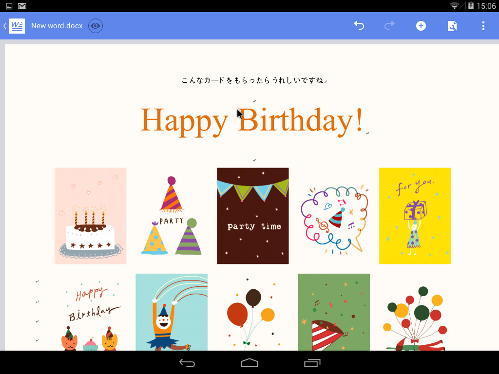 5 誕生日カードを選んで、日本語入力をしてみました。