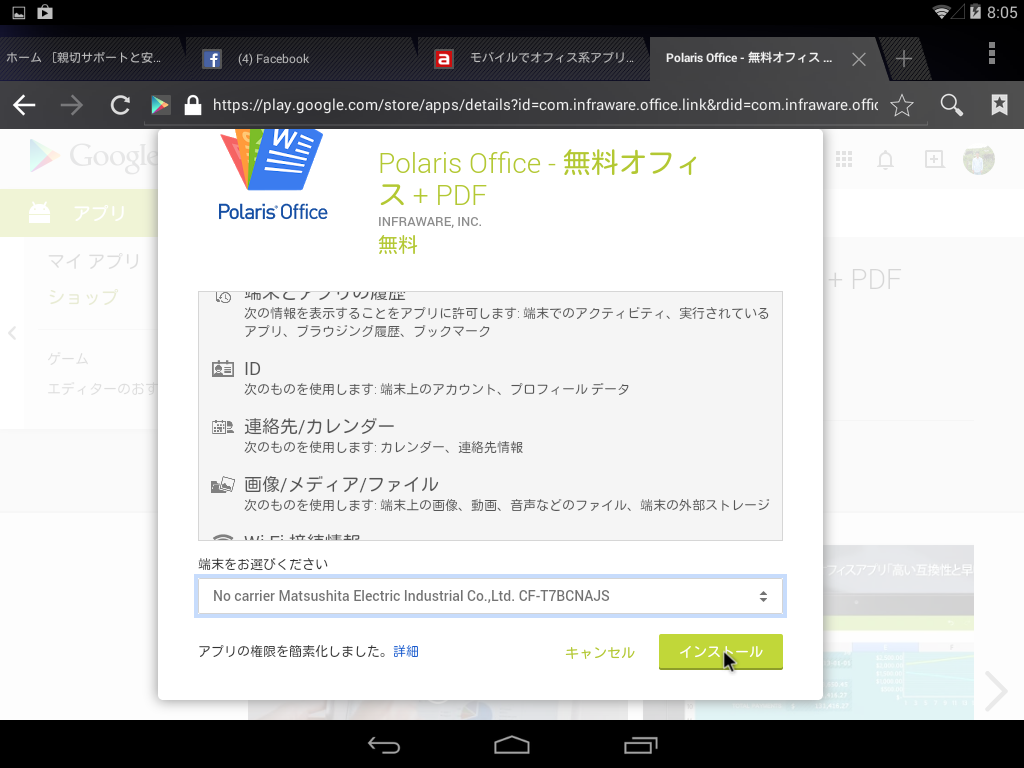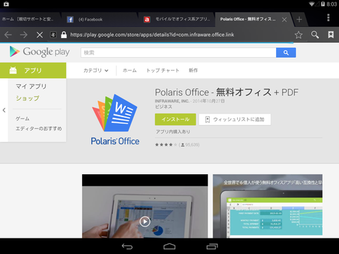 1 Google Playから「Polaris Office」を検索して、インストールします。